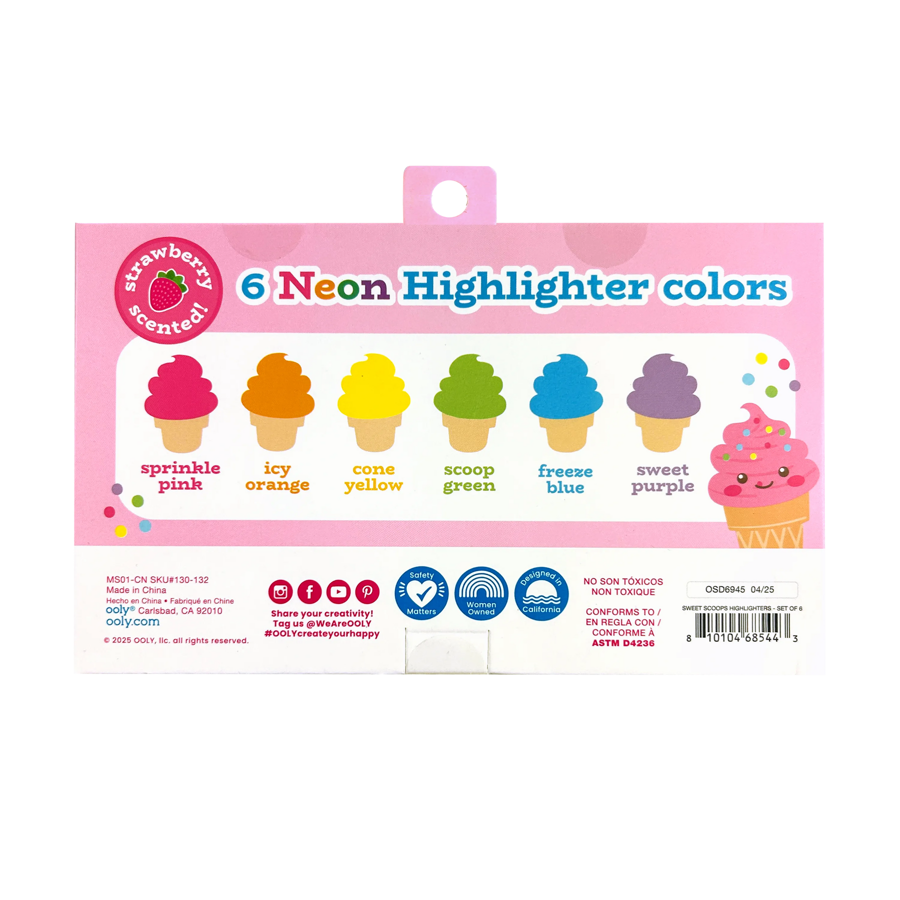 Make studying and note-taking extra sweet with the Sweet Scoops Scented Neon Highlighters! This set of 6 cute highlighters features a fun mini ice cream-shaped design, making them an irresistible addition to any collection. With neon ink, these mini highlighters add a vibrant touch to notes, planners, and artwork.