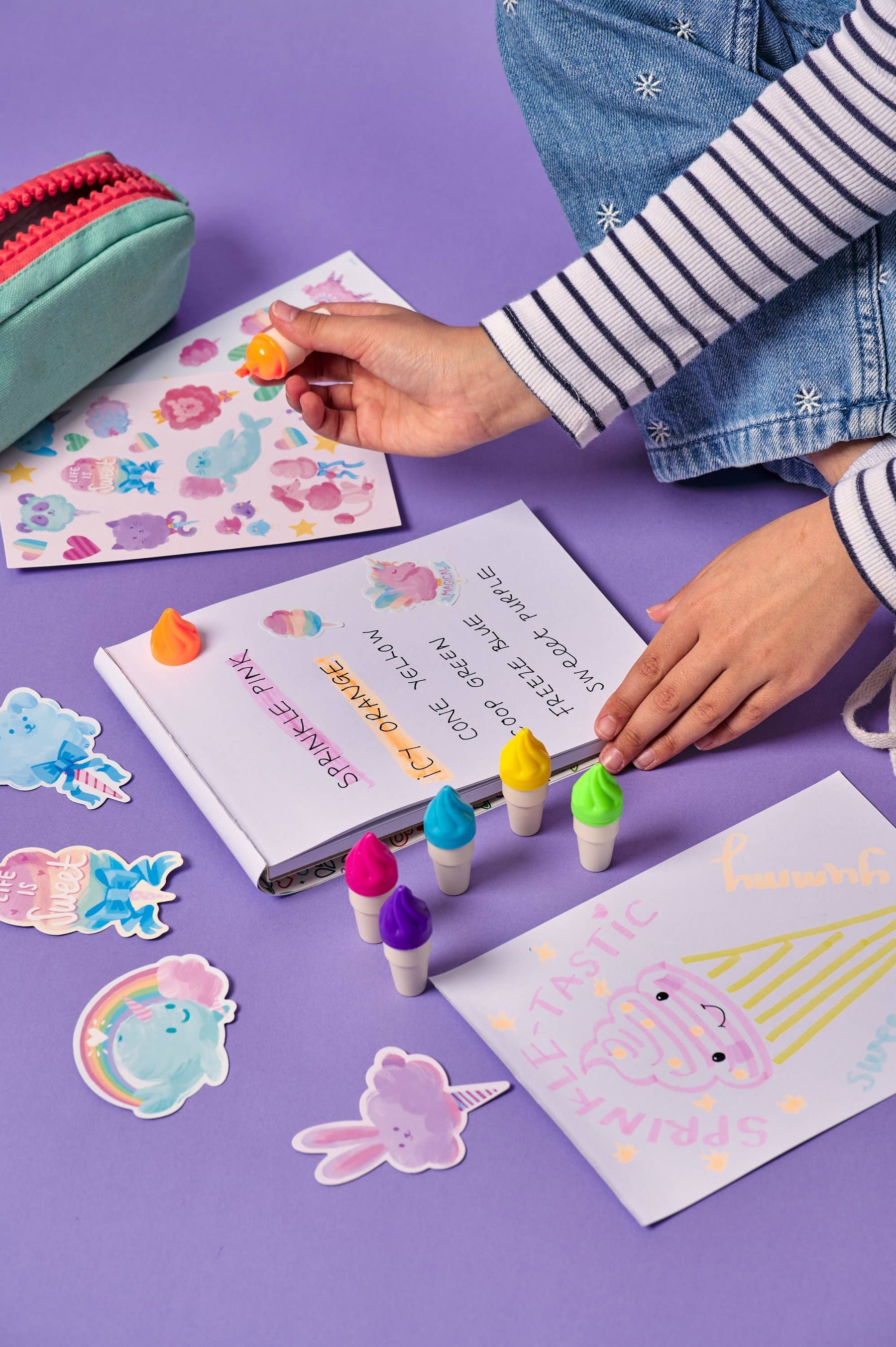 A set of 6 cute highlighters in fun mini ice cream shapes