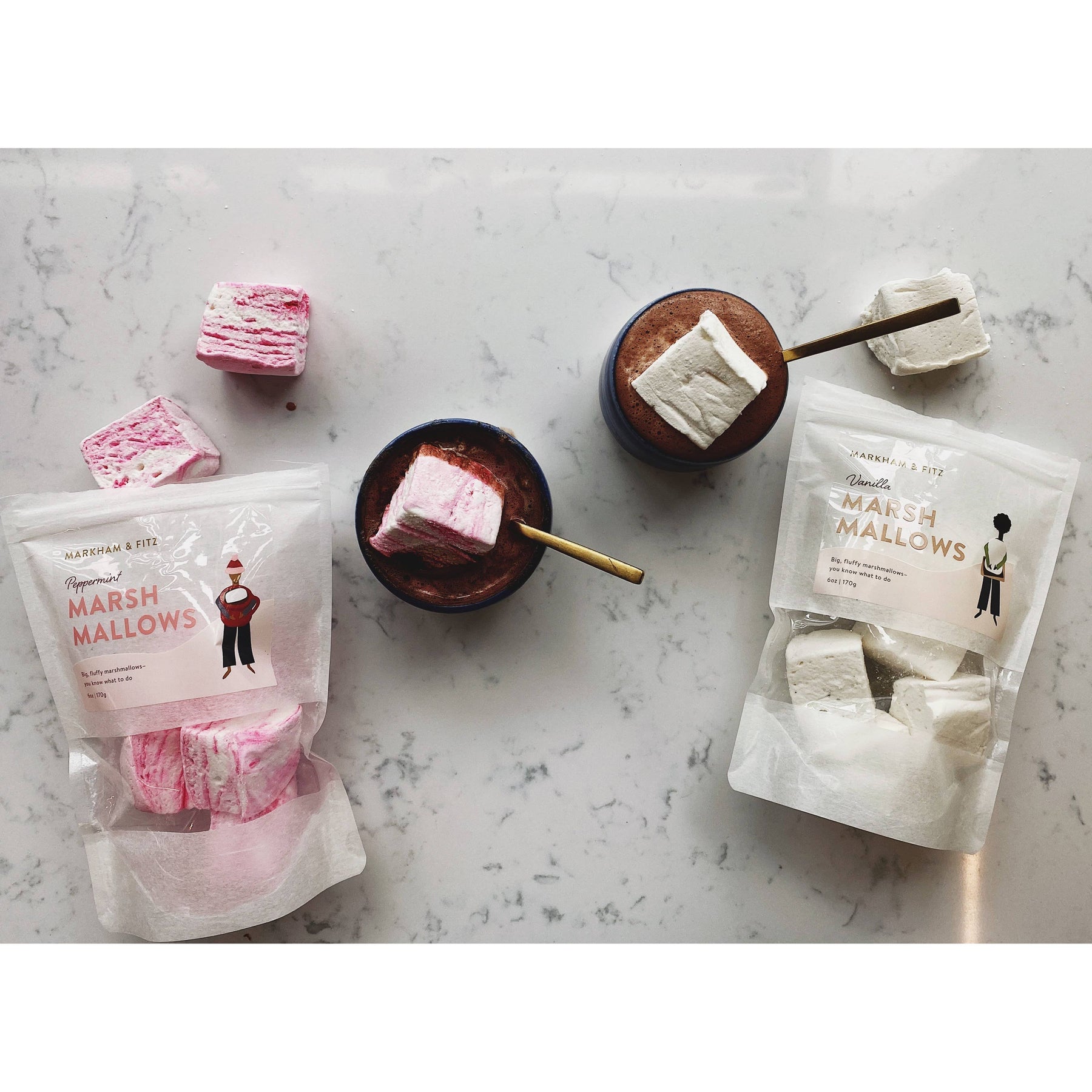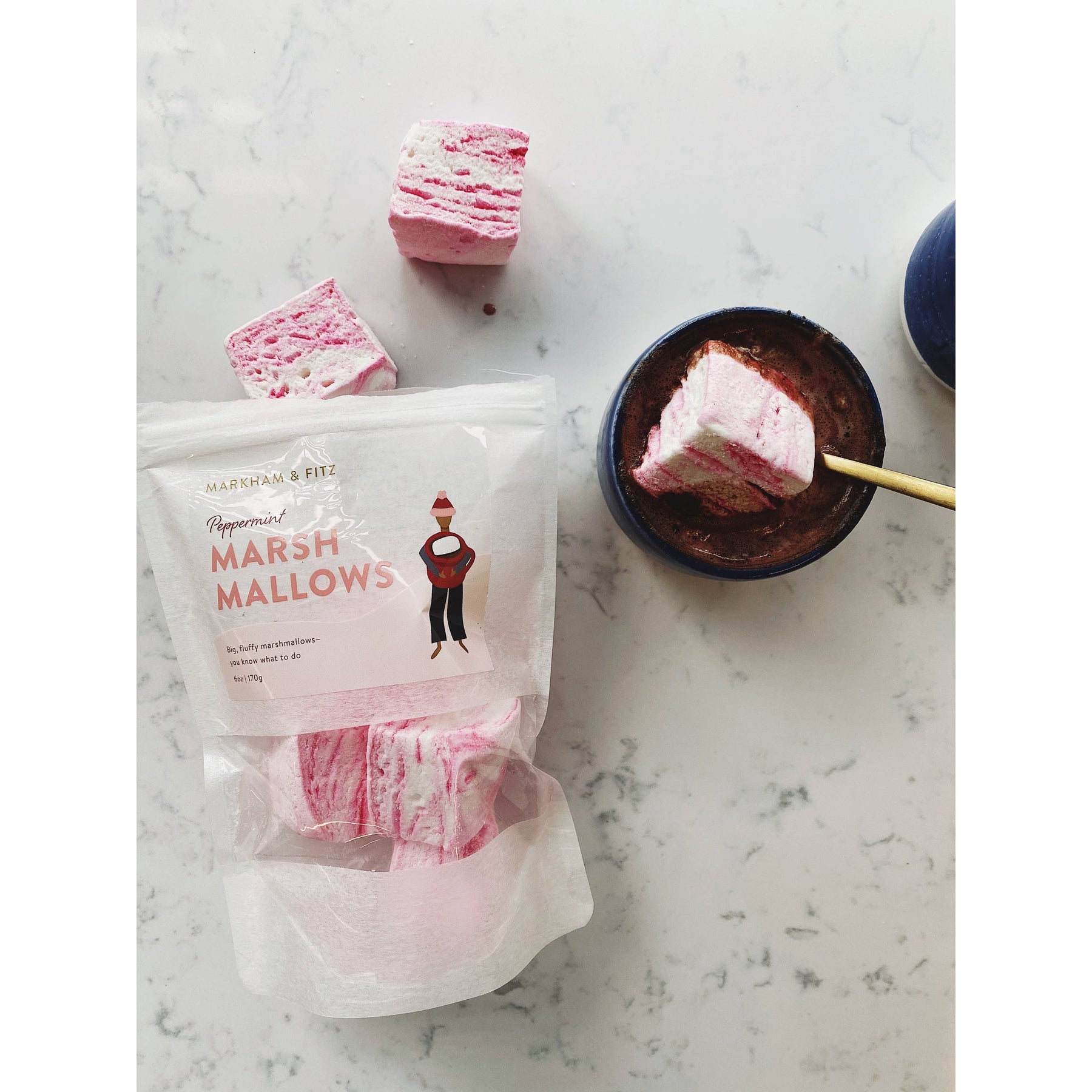 Big, fluffy peppermint marshmallows for drinking chocolate, s'mores, and more! Shelf life: 6 months from production