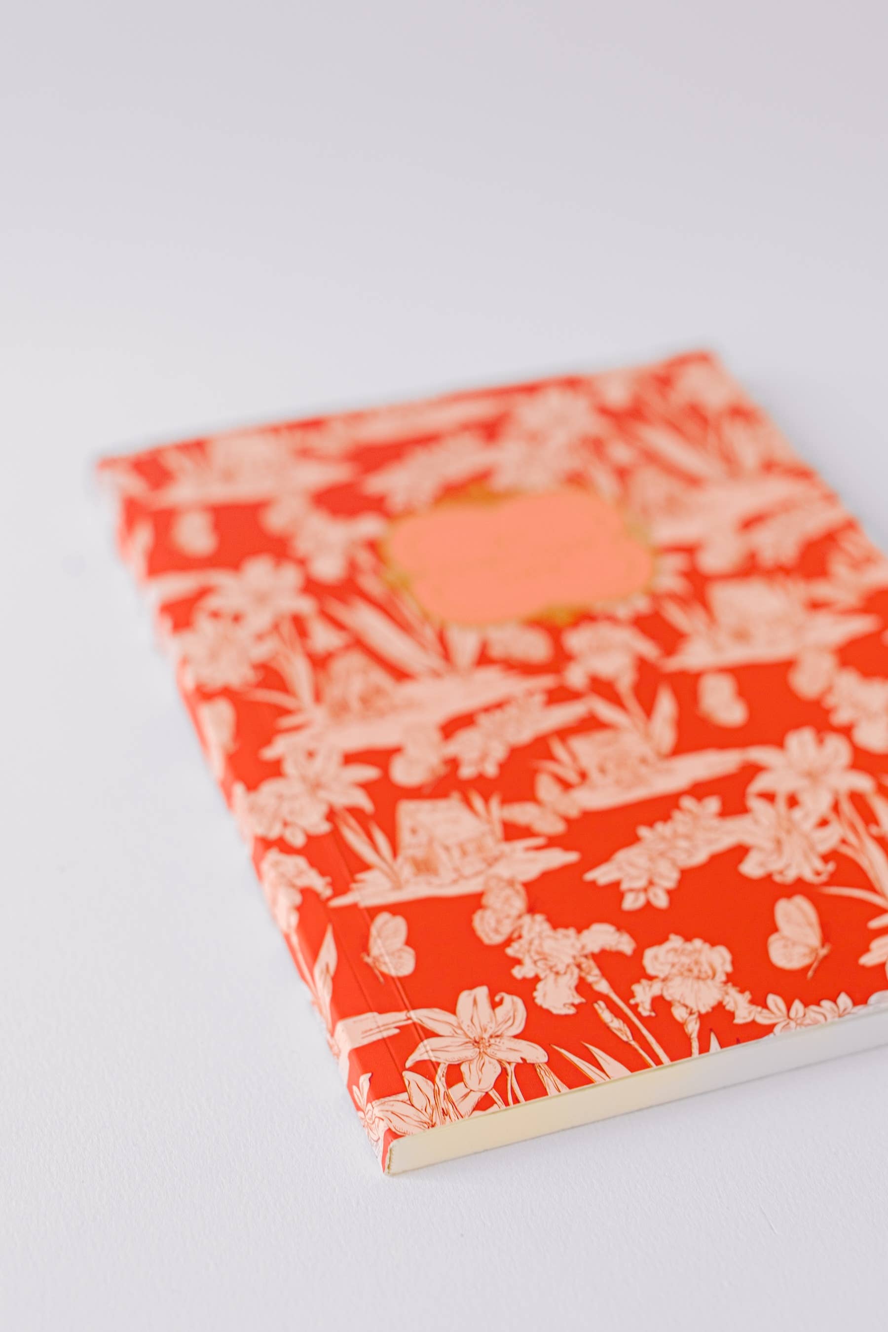 Notebook measures 6" x 8" and features lay flat binding. Includes 132 unlined pages. Front and back covers feature full color illustration.
