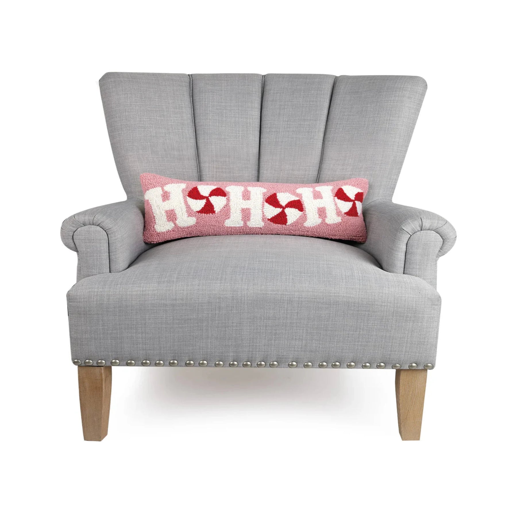 100% wool hooked square accent pillow. 100% velvet backing. Includes polyester insert, zipper closure. 8X20" throw pillow. Christmas winter holiday home decoration. Designed by PEKING HANDICRAFT