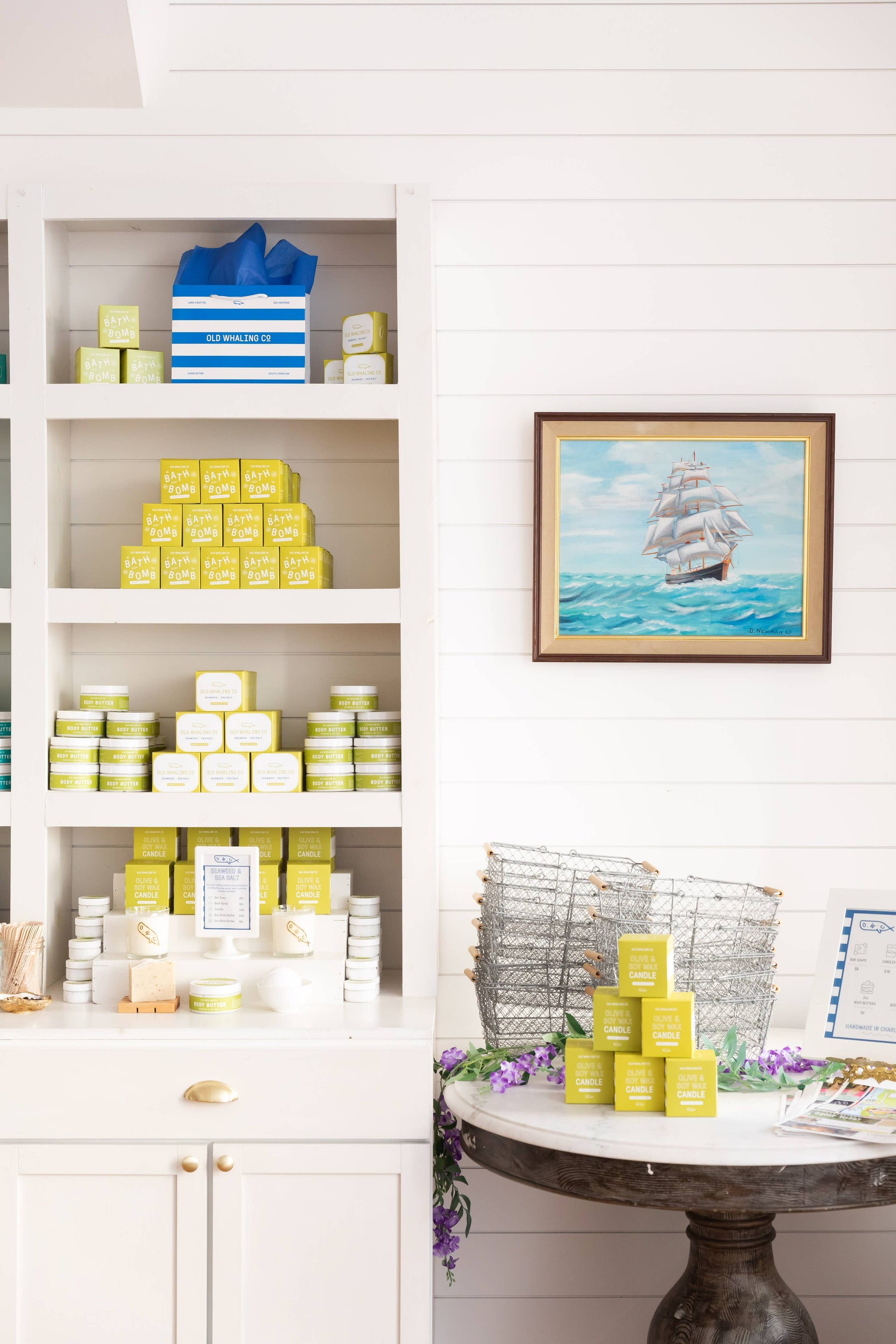 Top: Sea Spray, Bergamot, Sand Jasmine Base: Rosewood, Musk, Lavender, Sage Handmade in historic Charleston, SC, with epsom salts and olive oil, Old Whaling Co. 8oz bath bombs will leave your skin feeling moisturized and lightly scented. Our handcrafted bath bomb's soothing fizz and sea-inspired fragrance are perfect for a relaxing soak, rejuvenating the senses and cleansing the skin. At a 2.75” round, our bath bombs are perfect for a single bath. Color free with sea clay. Our bath bombs come boxed, and are wrapped in cellophane bags inside the box.