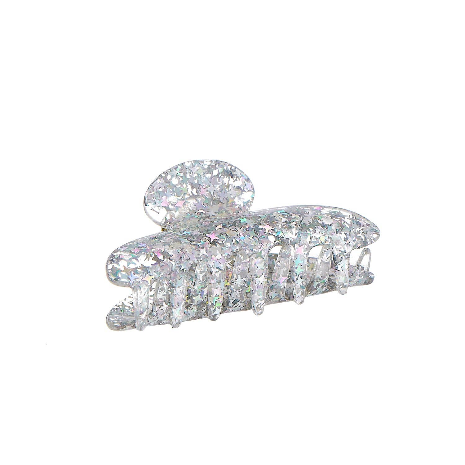 Introducing our brand-new product range … claw clips! Designed with little ones in mind, our fun disco claw clip adds a touch of disco fever to any hairstyle! Made in acetate and adorned with shimmering stars, the little grippy teeth will hold hair in place whilst little disco divas dance the night away! Made using cellulose acetate, a plant-based material from natural sources, its tough, safe and kind to the planet! Not suitable for children under 36 months due to small parts.