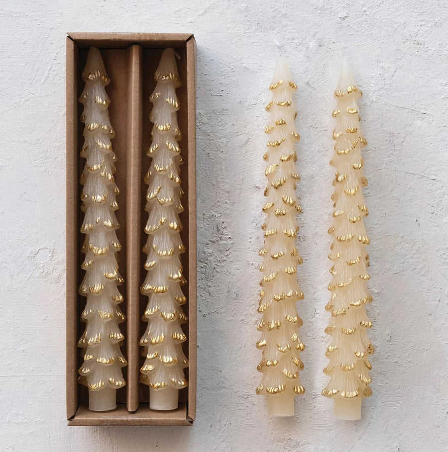 Holly Berry Unscented Tree Shaped Candle w/ Gold Tips
