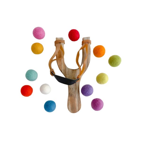 Wood Slingshot with 12 Felt Balls: Brights Assortment
