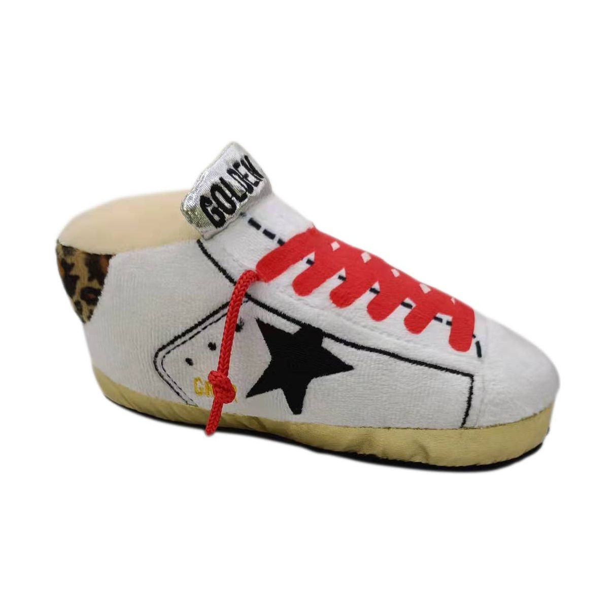 Get the distressed sneaker toy with soul! Our parody take on the iconic tennis shoe is not only jaw-dropping, it’s also drool-inducing! Just like the original, the plush white exterior is sure to become more authentic-looking with age. Unlike the original, this one features a delightful squeaker inside that will instantly make it a favorite with your furry fashionista!