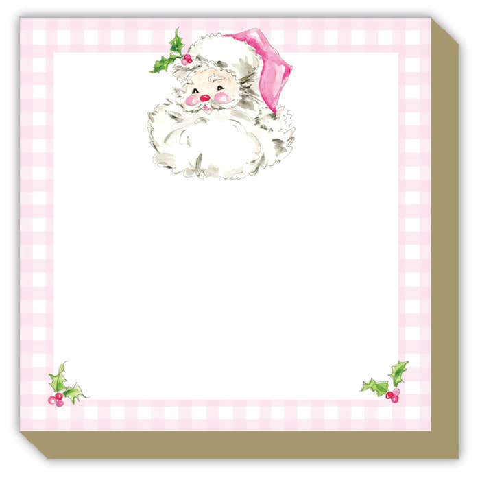 Handpainted Pink Santa with Gingham Border Luxe Notepad