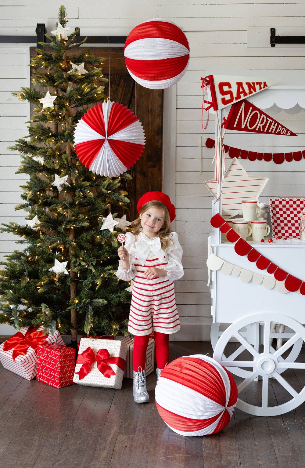 Red and Cream Accordion Paper Lanterns