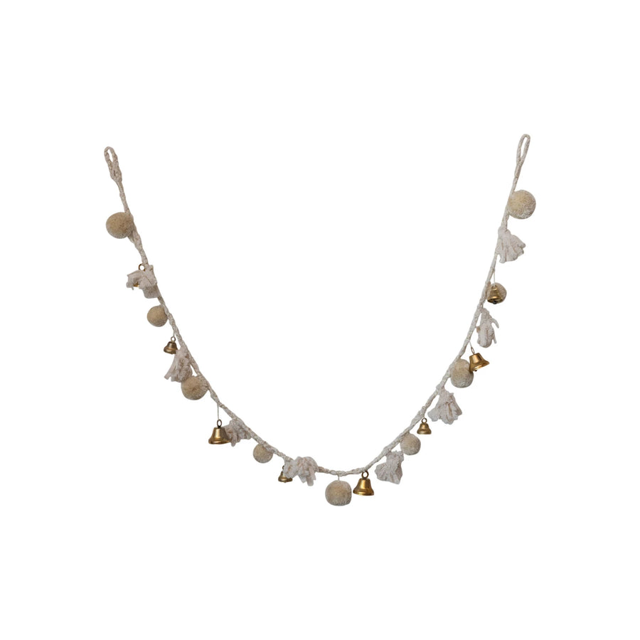 Natural & Brass Finish Pom Pom & Bell Garland