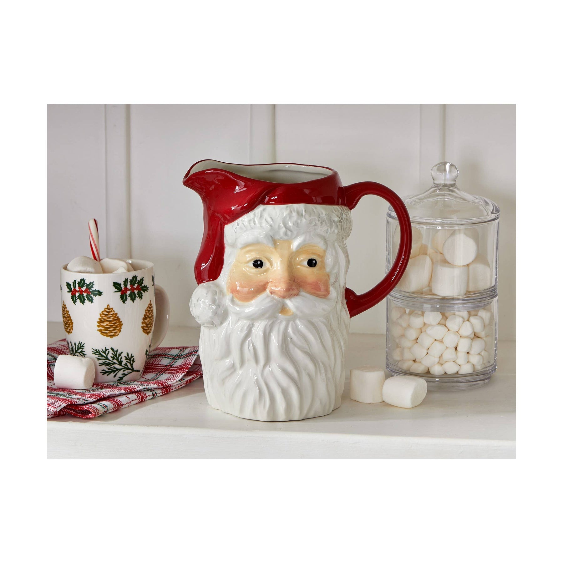 Entertain with style! Impress your guests with this vintage style santa pitcher, featuring beautiful hand-painted details. Simply fun and festive santa decor. Mix and match with a range of earthenware selections from tag. Perfect for gifting.
