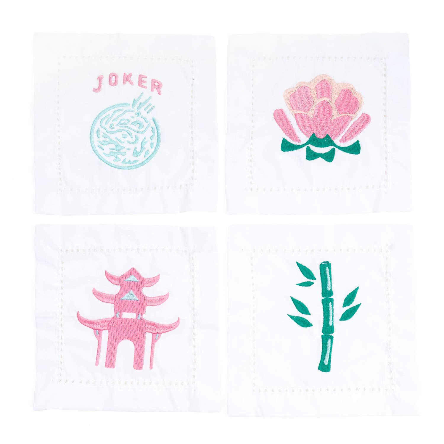 Bring a touch of playful sophistication to your table with this 4-Piece Cotton Cocktail Napkin Set, each napkin embroidered with Mahjong-inspired icons on crisp white cotton. Perfectly combining whimsy and elegance, the intricate embroidery captures the charm of the classic game, adding a stylish, themed accent to any gathering or game night. Crafted from 100% cotton, these napkins are soft, durable, and reusable, offering both practicality and visual appeal. Generously sized, they are ideal for serving cocktails, appetizers, or small bites, while the detailed embroidery adds a thoughtful, decorative touch that elevates any entertaining experience. Packaged in a clear acetate box, this set is ready to gift to Mahjong enthusiasts, hosts, or anyone who enjoys distinctive, stylish tableware.
